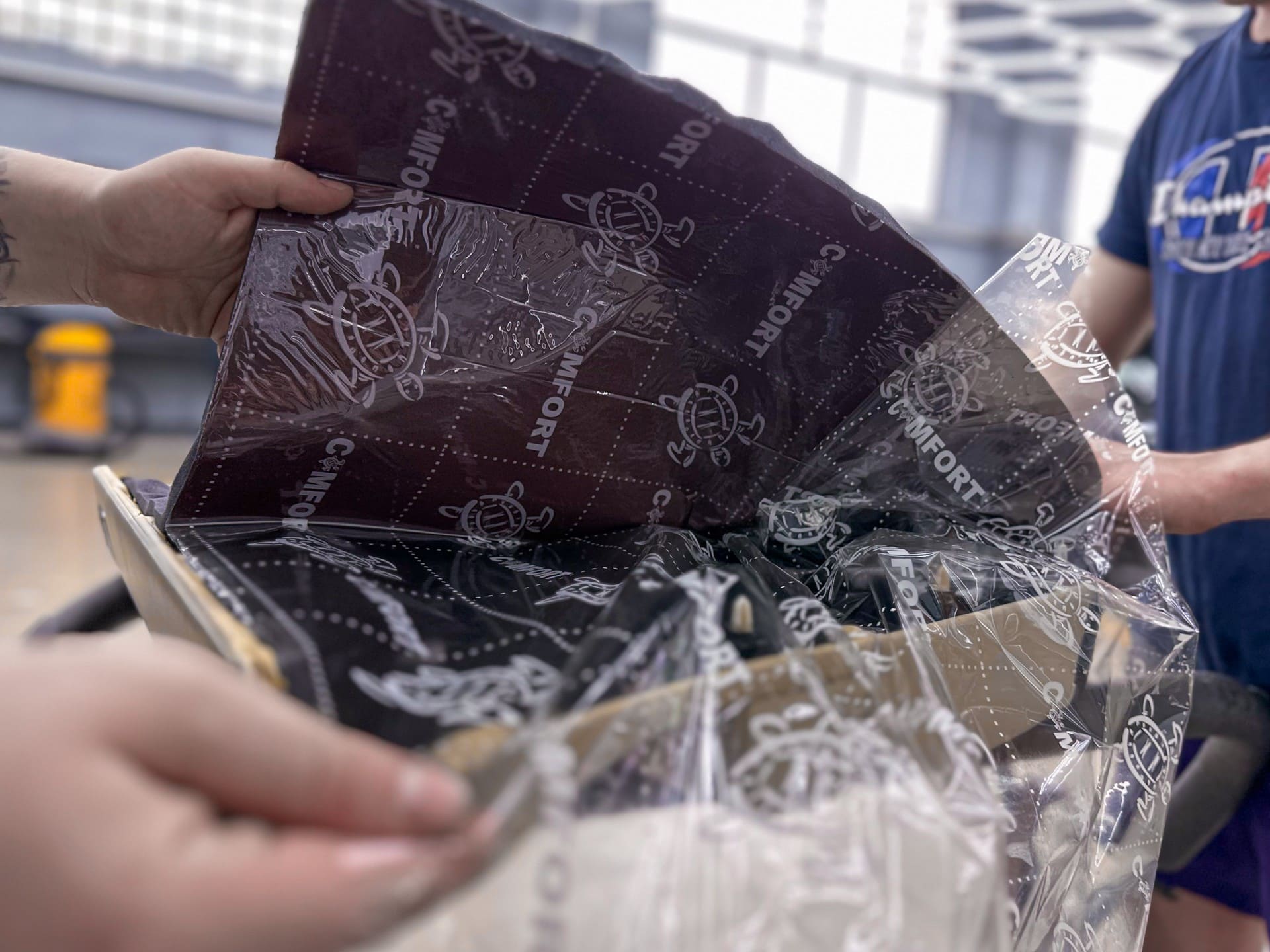 - Поверх виброизоляции добавили слой пористой пены, которая поглощала звук.