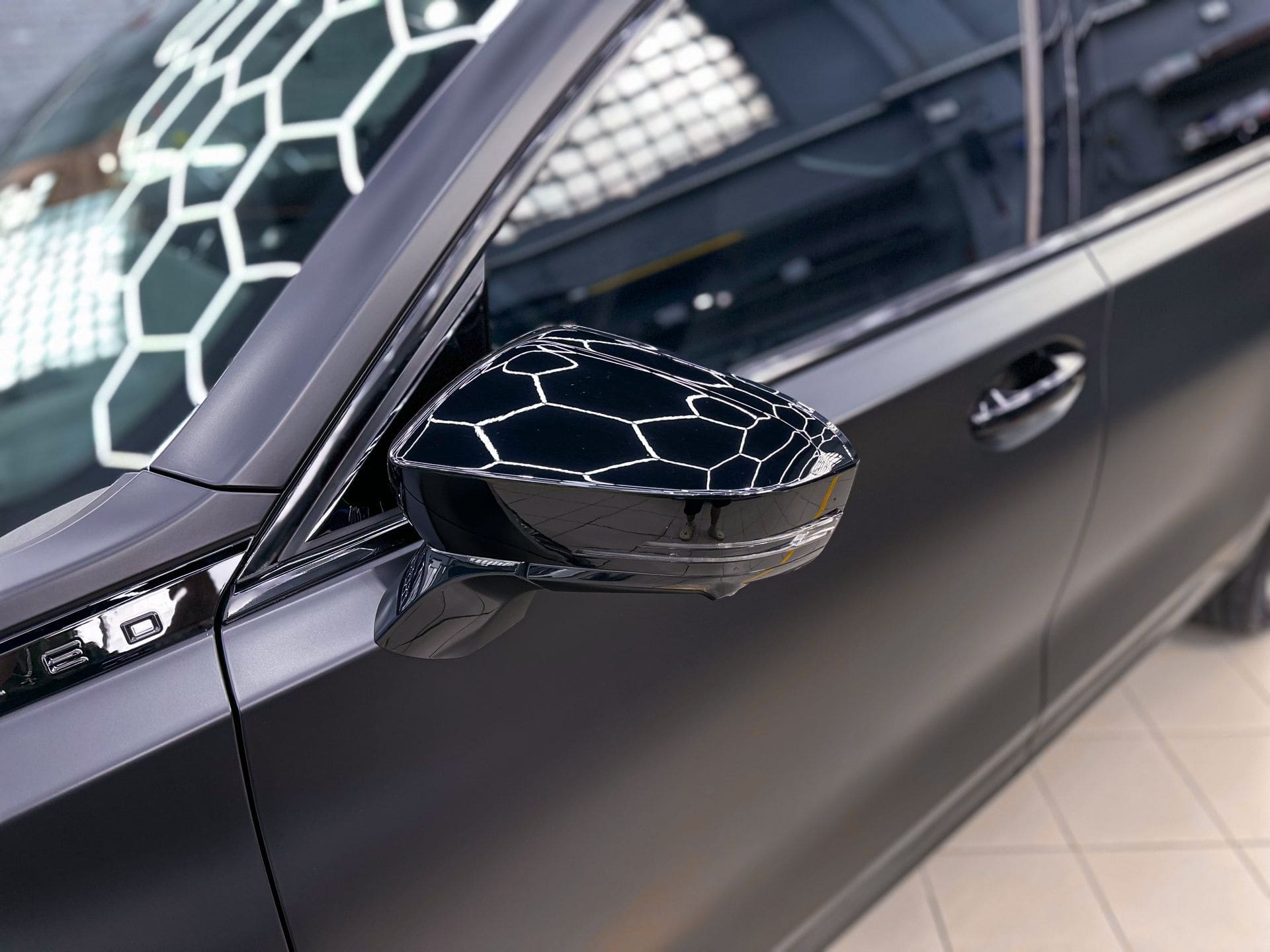 - Клиент хотел перевести кузов из глянца в матовый, убрать хром и подчеркнуть детали в чёрном глянце.