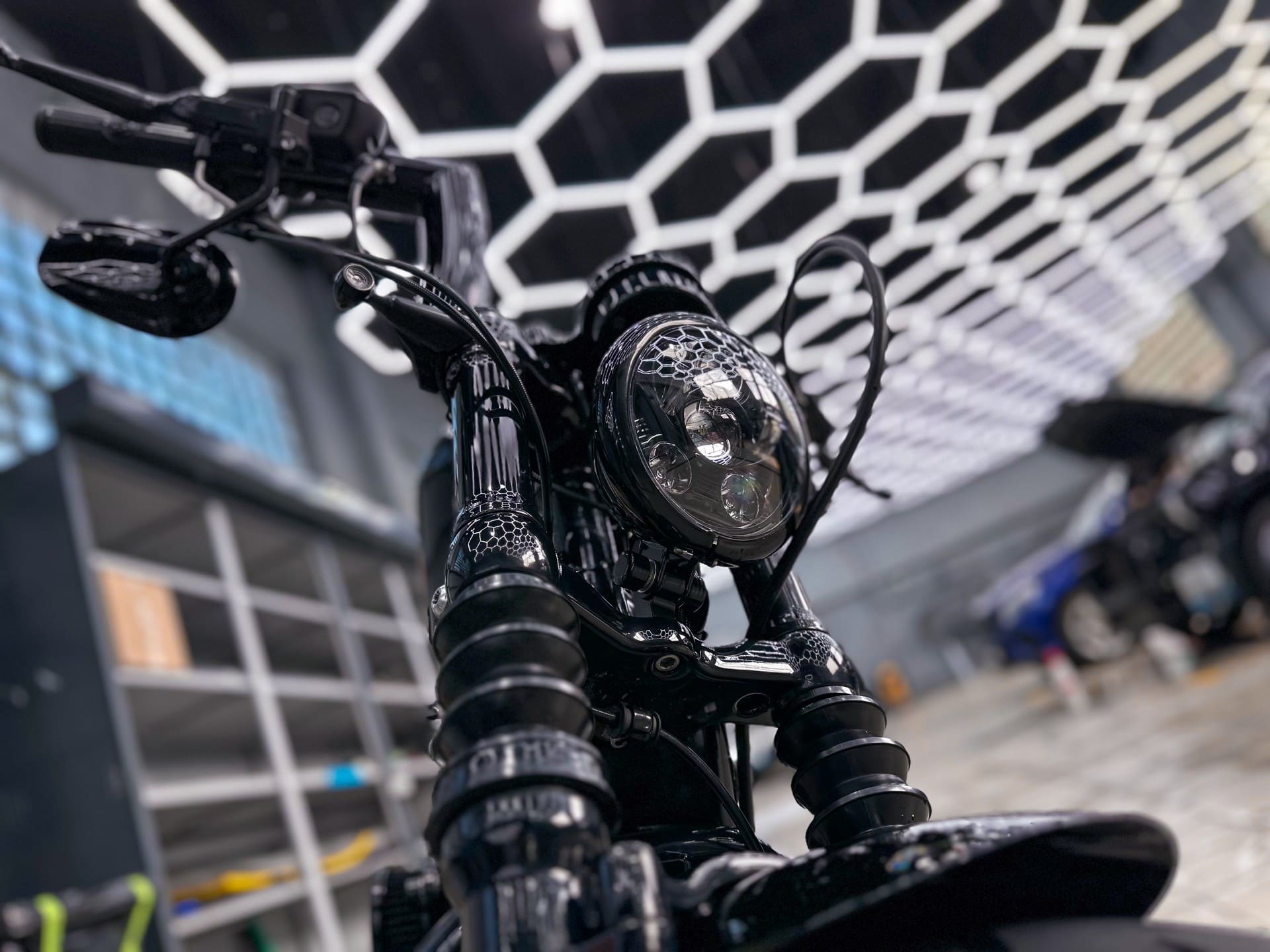 Бак на Harley-Davidson — одна из самых сложных деталей в оклейке. Из-за формы и геометрии его невозможно качественно закрыть одним цельным куском пленки. Поэтому было принято правильное техническое решение: оклеить бак из нескольких частей, а швы спрятать по ребрам и линиям световых засветов.