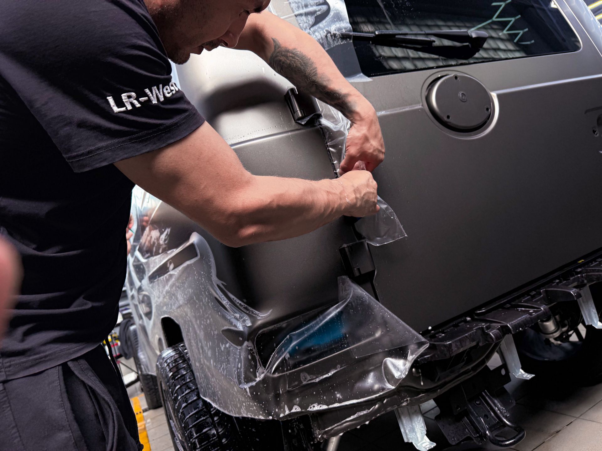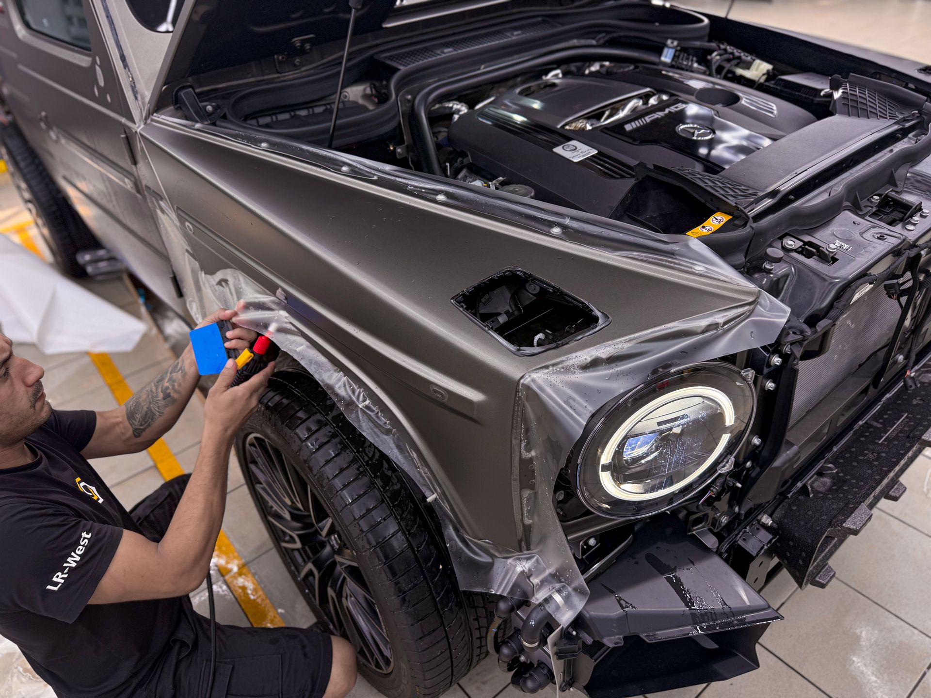 Провели арматурные работы, чтобы спрятать кромки и выполнить подвороты везде, где это конструктивно возможно. Итог — максимально «заводской» вид.Почему это критично для матового Гелендвагена
