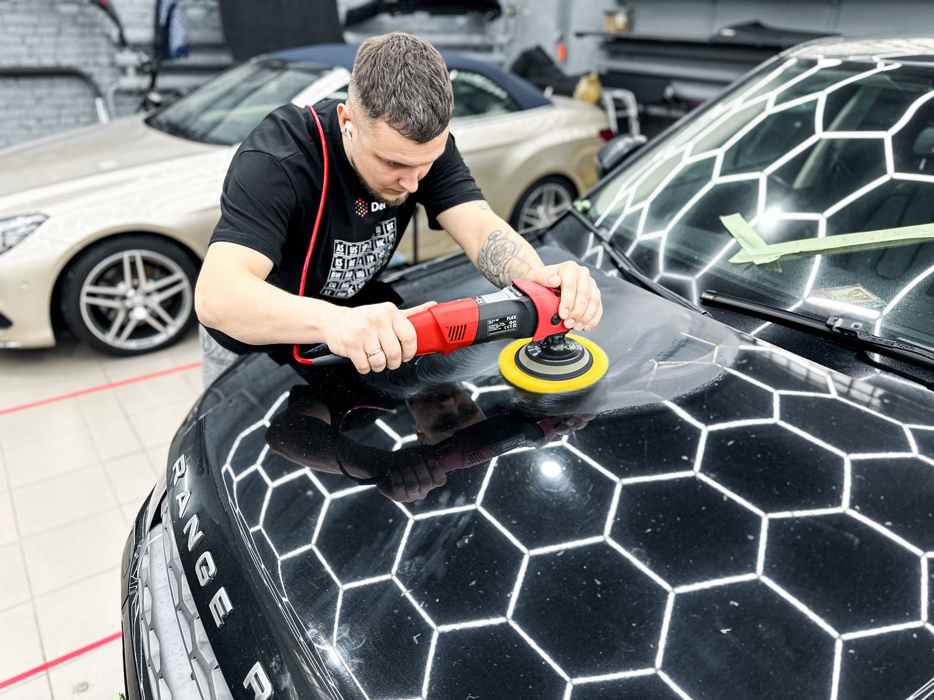 В наш центр приехал Range Rover Evoque на комплекс детейлинг‑услуг. Автомобиль с приличным пробегом, кузов потускнел: следы эксплуатации, паутинка, пескоструй, на черном цвете пропала насыщенность и глубина. Мы провели полную очистку, восстановили лакокрасочное покрытие и защитили его керамикой, чтобы эффект сохранялся как можно дольше.